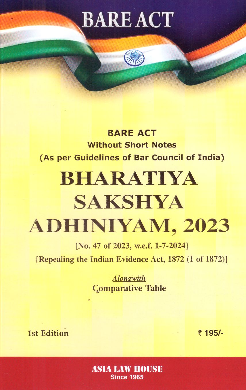 Bare Act Without Short Notes ( as per guidelines of Bar Council of India ) Bharatiya Sakshya Adhiniyam 2023 ( No. 47 of 2023 w.e.f. 1-7-2024) ( Evidence ) 1st Edn. 2025 bsa