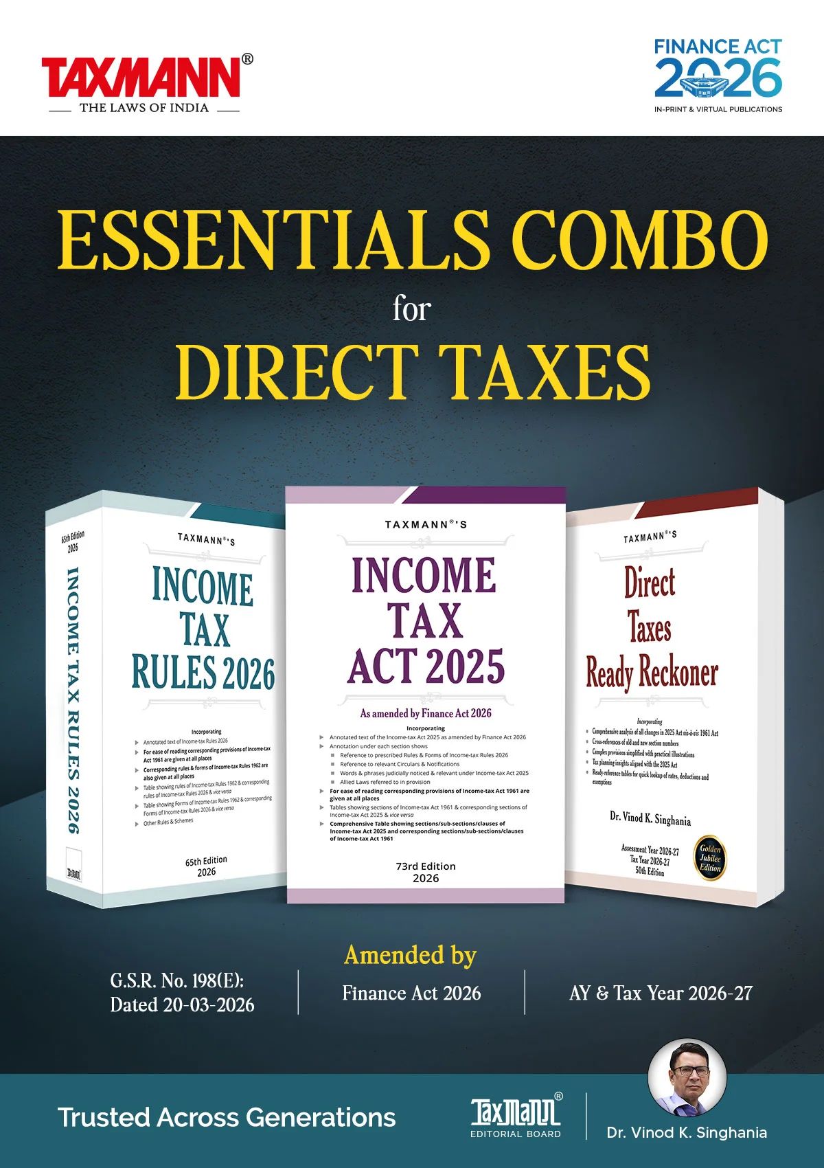 axmann Combo Direct Tax Laws (Income Tax Act 2025 , Income Tax Rules 2026 , Direct Taxes Ready Reckoner) Set of 3 Books By Vinod K. Singhania Edition March 2026 |
