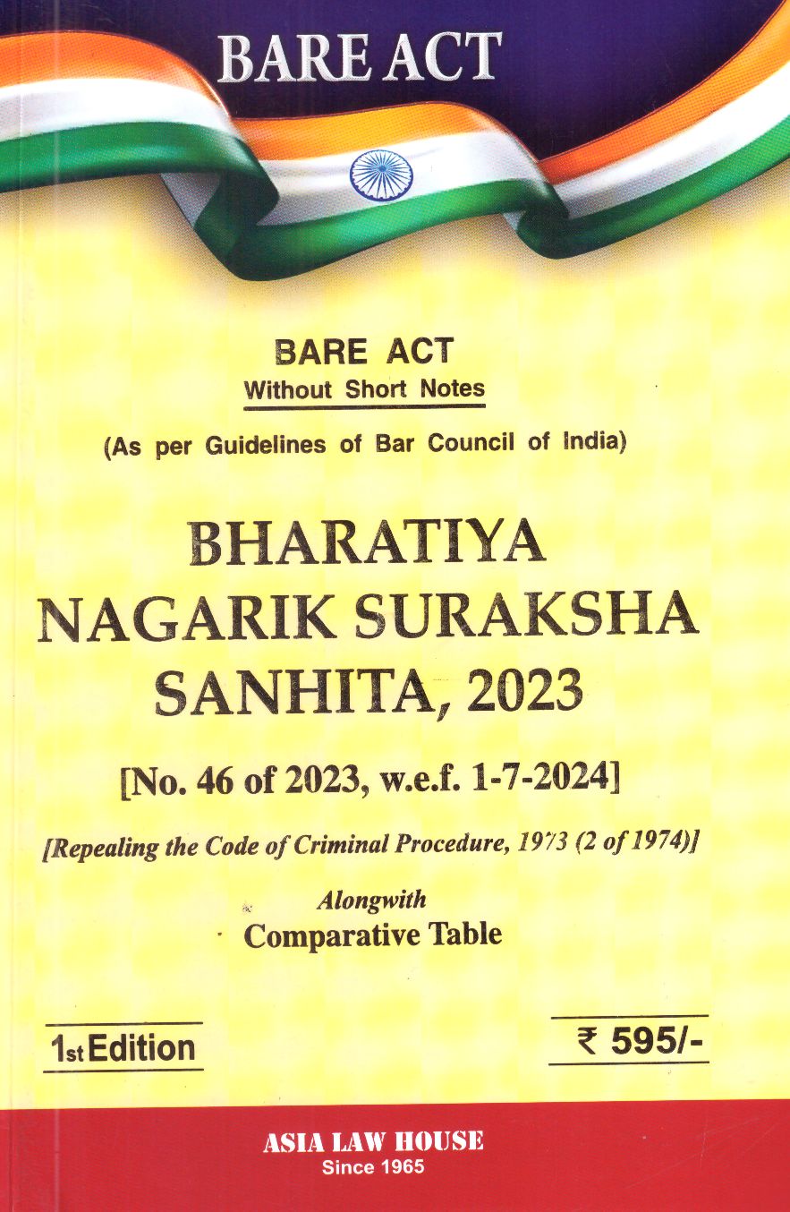Bare Act Without Short Notes ( as per guidelines of Bar Council of India ) Bharatiya Nagarik Suraksha Sanhita 2023 ( No. 46 of 2023 w.e.f. 1-7-2024 ) (Criminal Procedure ) 1st Edn. 2025 bnss