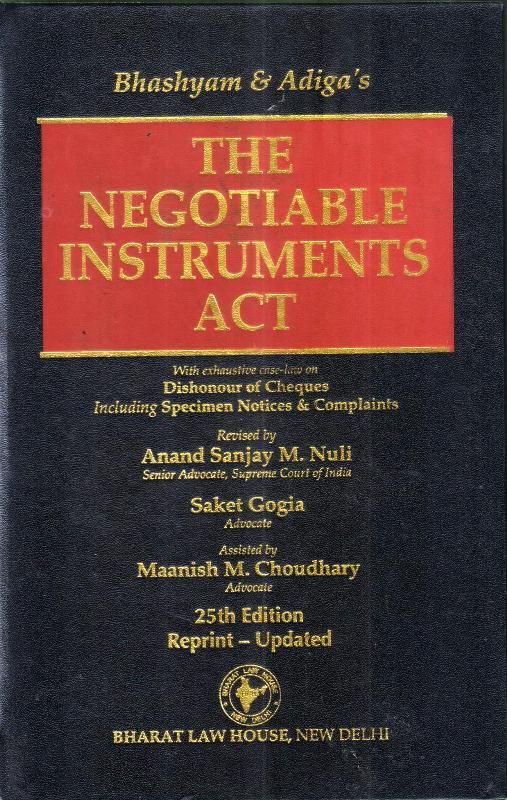 Bhashyam & Adiga's THE NEGOTIABLE INSTRUMENTS ACT With exhaustive case-law on Dishonour of Cheques Including S pecimen Notices & Complaints reprint edn. 2025